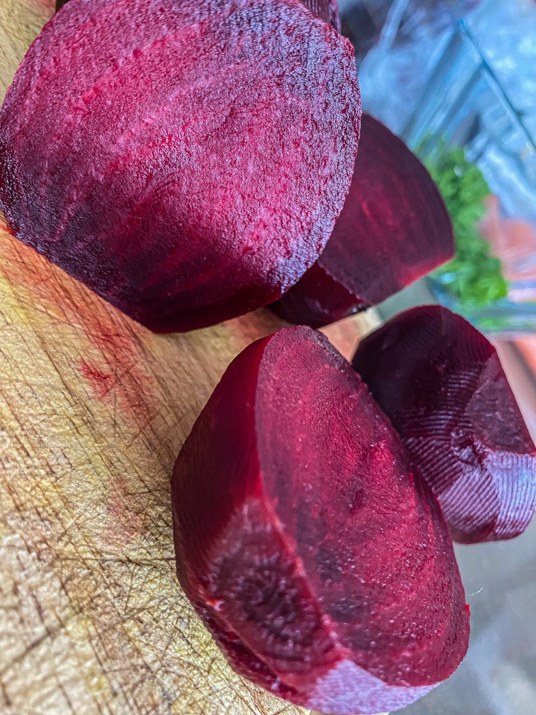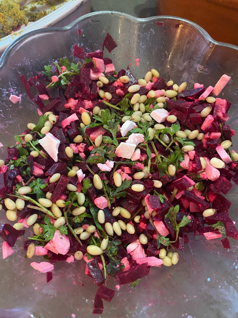 Osvěžující, pestrý salát z červené řepy mi připomíná výtečnou kuchyni jihoevropských zemí. Tento salát jsem začala připravovat až po několika letech života v Izraeli, protože řepa má v místní kuchyni bohaté zastoupení a je velmi chutná. Řepa mi nikdy moc nechutnala a musela jsem si k ní najít cestu, tato úprava je velmi dobrá.
