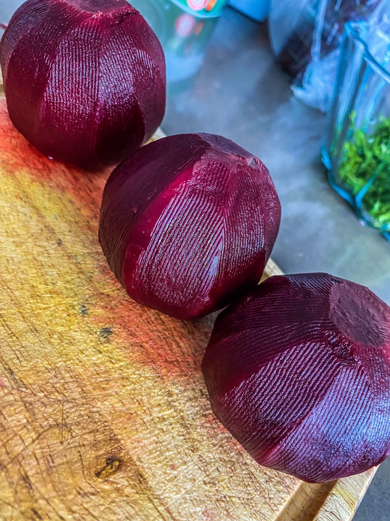 Příprava: řepy se slupkou omyjeme pod tekoucí vodou, odkrojíme zbytky stonků a vložíme do hrnce s vroucí vodou, vaříme cca 15 minut, popřípadě déle dle potřeby. Řepy by měly být měkké. Dále si očistíme zeleninu, ať už je to rukola, špenát nebo polníček. Přidáme nakrájená