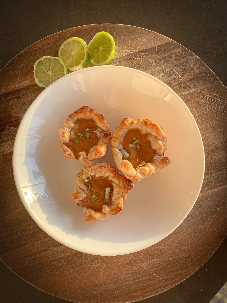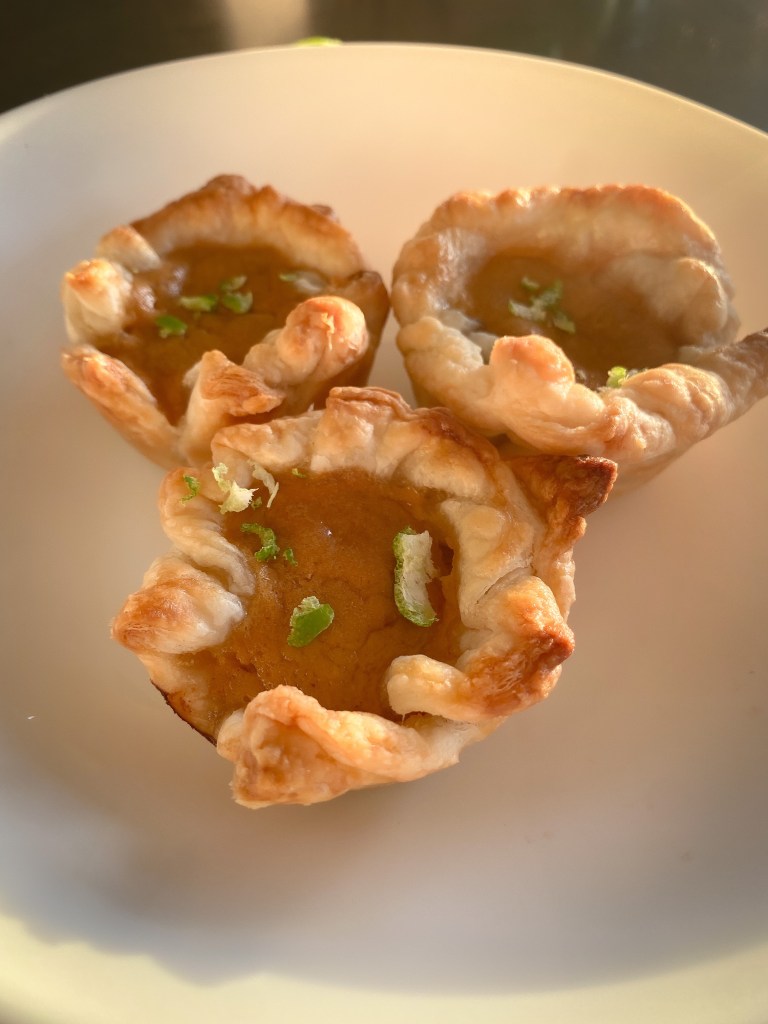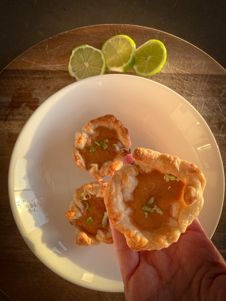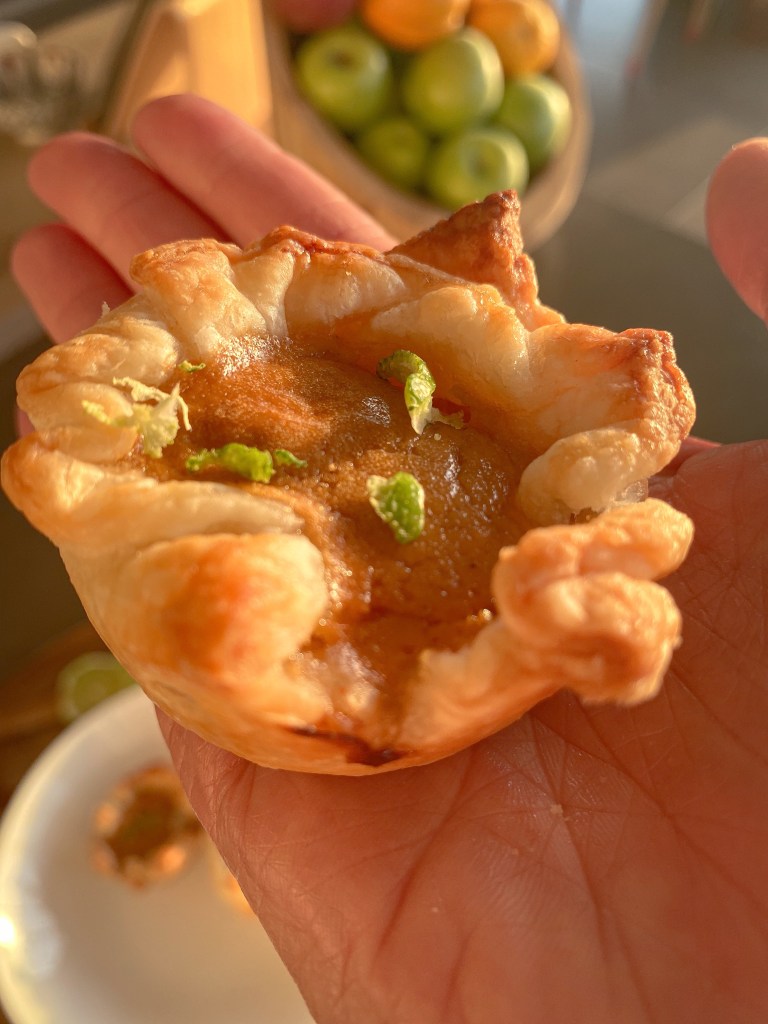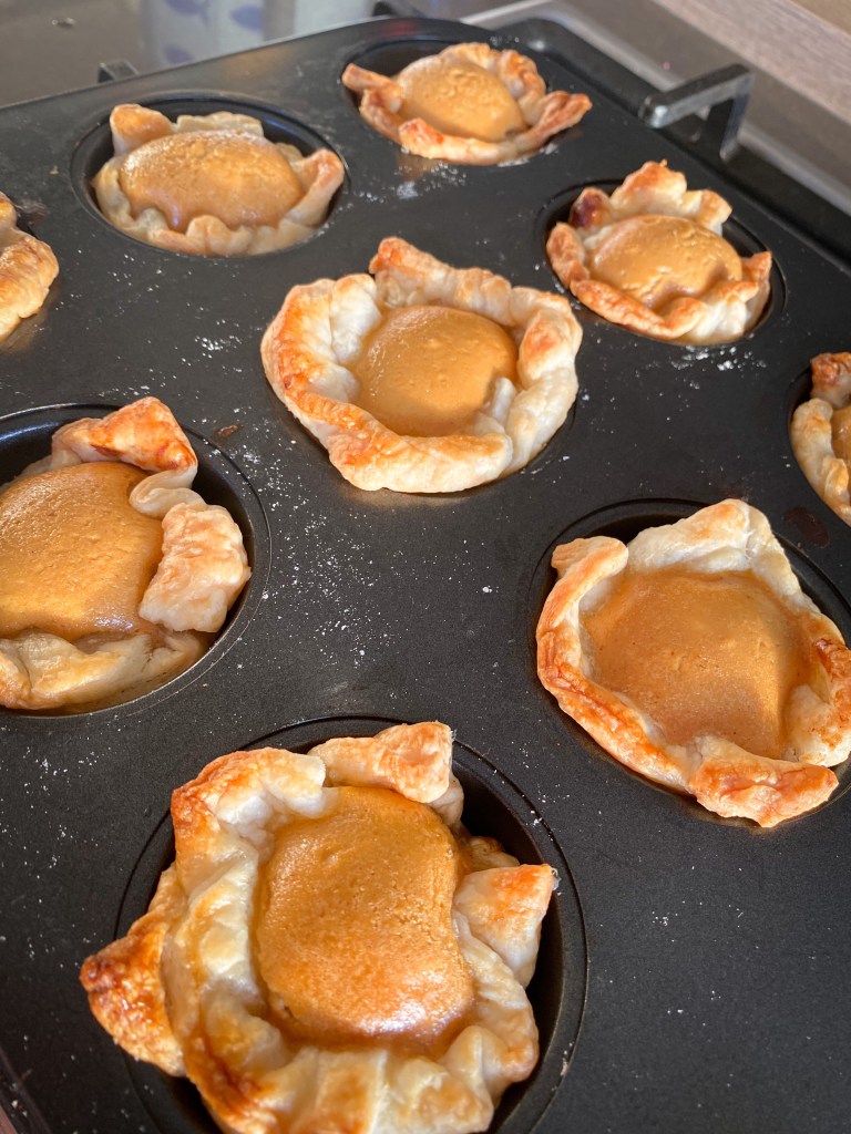 Postup: muffinový plech vytřeme rozpuštěným máslem a posypeme trochou mouky. Listové těsto rozkrájíme na čtverce a vykládáme muffinovou formu tak, že nám vždy těsto převyšuje několik centimetrů samotnou formu. Listové těsto jsem tentokrát koupila, nicméně lze připravit vlastní, recept na vlastní listové těsto budu sdílet v dalším samotném receptu na klasický štrůdl. Směs do košíčků: vyšleháme 2 žloutky a 2 vejce spolu s datlovým sirupem, přidáme tvaroh a mléko, burbon a vanilkový cukr, nakonec přidáme najemno nastrouhanou citronovou kůru. Směs nalijeme do košíčků, necháme dost místa od okrajů, neboť nám směs vzejde. Pomažeme vrch těsta bílky a zapékáme 20 minut na 180 C dozlatova.