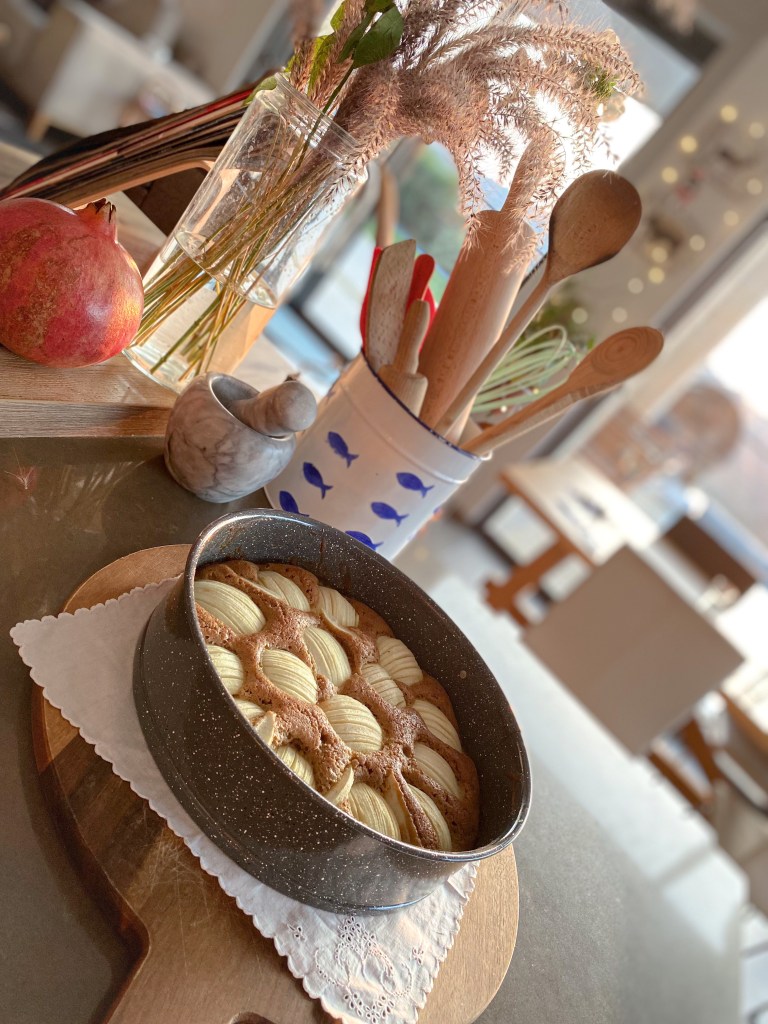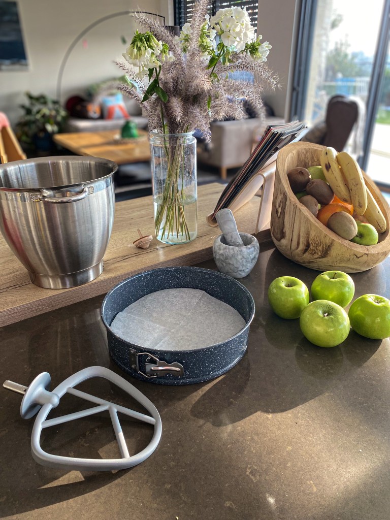 Miluji pečení a tenhle koláč byl přivítáním pro Michellky babičku, která dorazila z Čech do Izraele. Jedná se o lehkou formu sladkého dezertu, ke kterému se výborně hodí bílý řecký jogurt a datlový sirup jako poleva. Jablka zde zjemňují celkovou chuť. Vyzkoušejte, stojí za to 🙂