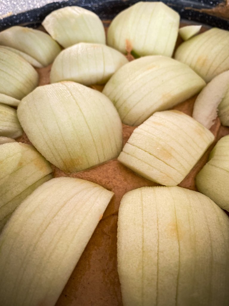 Tipy: jablka je dobré buď předem lehce zasmahnout na pánvi se skořicí, hvězdičkou anýzu a s hřebíčkem nebo lehce povařit ve vodě. Zároveň se dá ke koláči přidat bílý řecký jogurt a jako jemná poleva datlový sirup.
