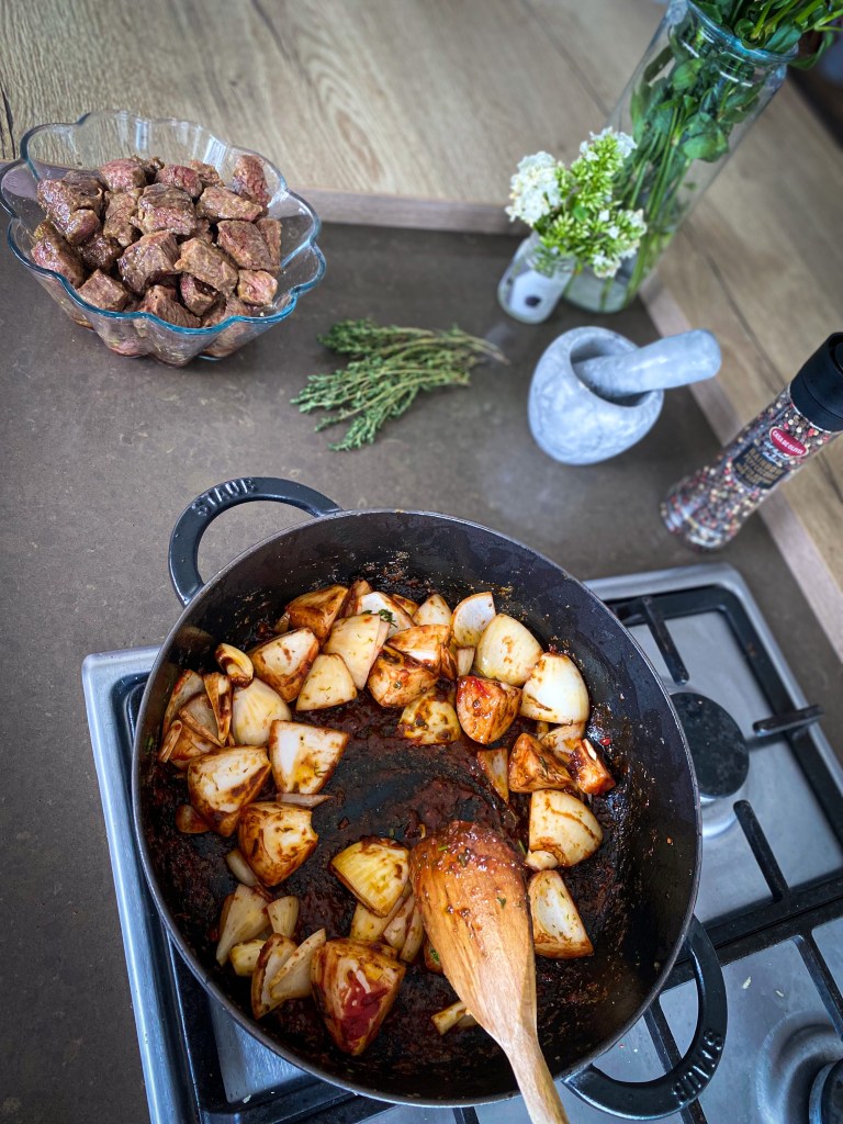 Před několika dny jsem objevila úžasnou inspiraci v turecké venkovské kuchyni. Jakmile jsem shlédla video na IG, bylo mi jasné, že tento recept bude mým dalším cílem a velmi vzrušujícím. Recept jsem trochu poupravila dle osobních preferencí. Výsledek je rájem pro chuťové buňky. Jedná se o jídlo ideální pro podzim a zimu, patří k těm chuťově hutnějším pokrmům. Výborně se k němu hodí červené víno typu MALBEC.