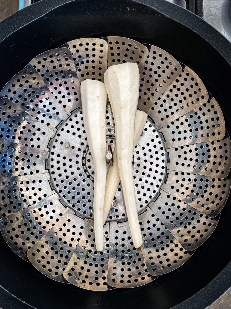 1) celý květák a 3 kořeny petržele