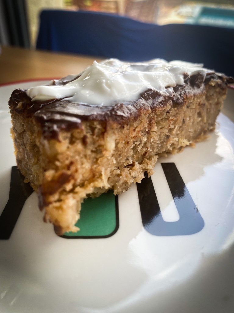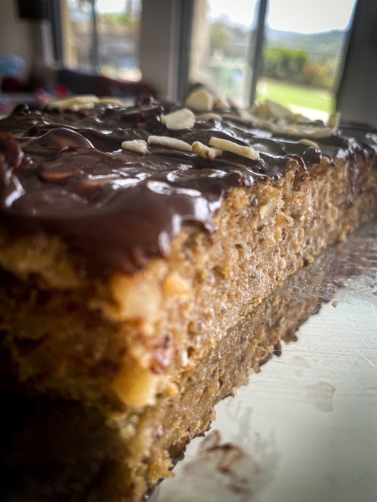 Jako téměř každý jiný sladký recept je tento obrovským favoritem mojí dcery. Je hutný, plný úžasných ingrediencí a 75% čokoládová poleva s mandlemi dodává chlebu úžasný rozměr.