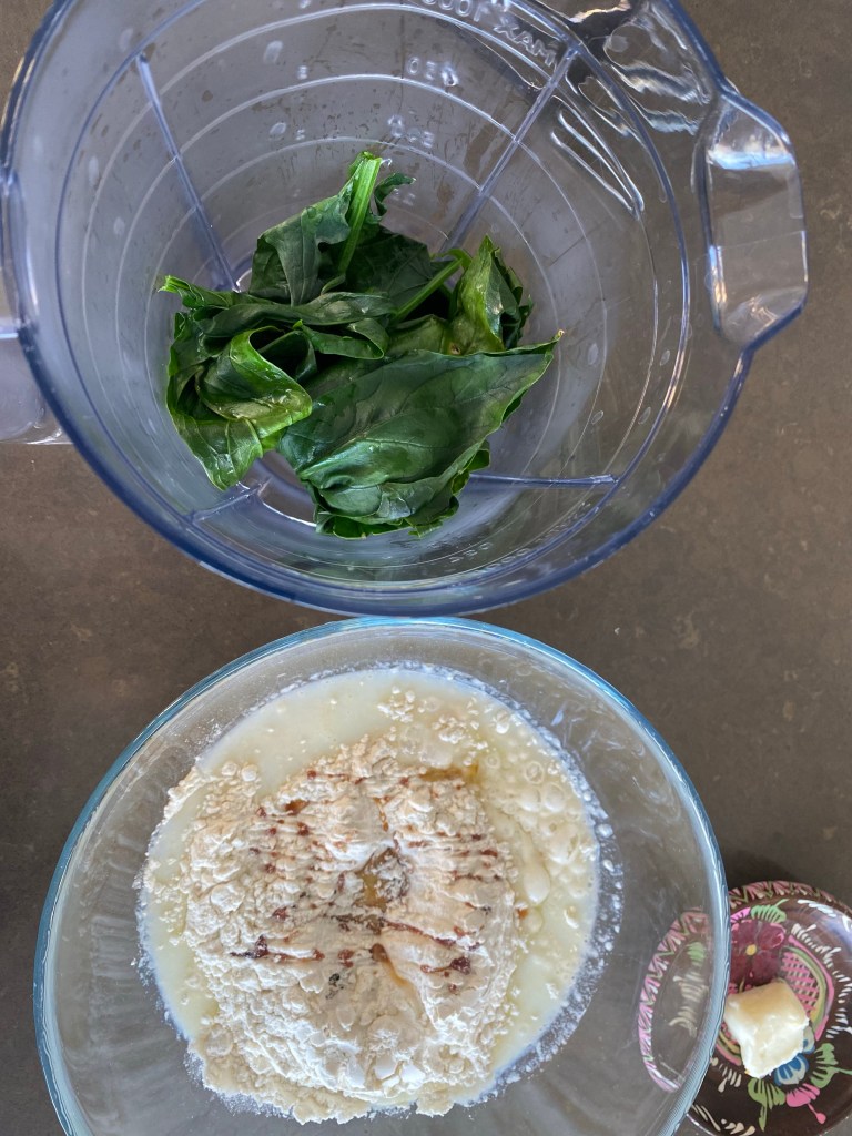 Takto připravenou špenátovou směs smícháme s vajíčkem a moukou. Směs vymícháme ručně tak, aby neobsahovala hrudky. Směs musí být tekutá, ale lehce táhlá. Pokud je moc hutná, přidejte smetanu či mléko. Pokud je naopak moc tekutá, přidejte mouku.