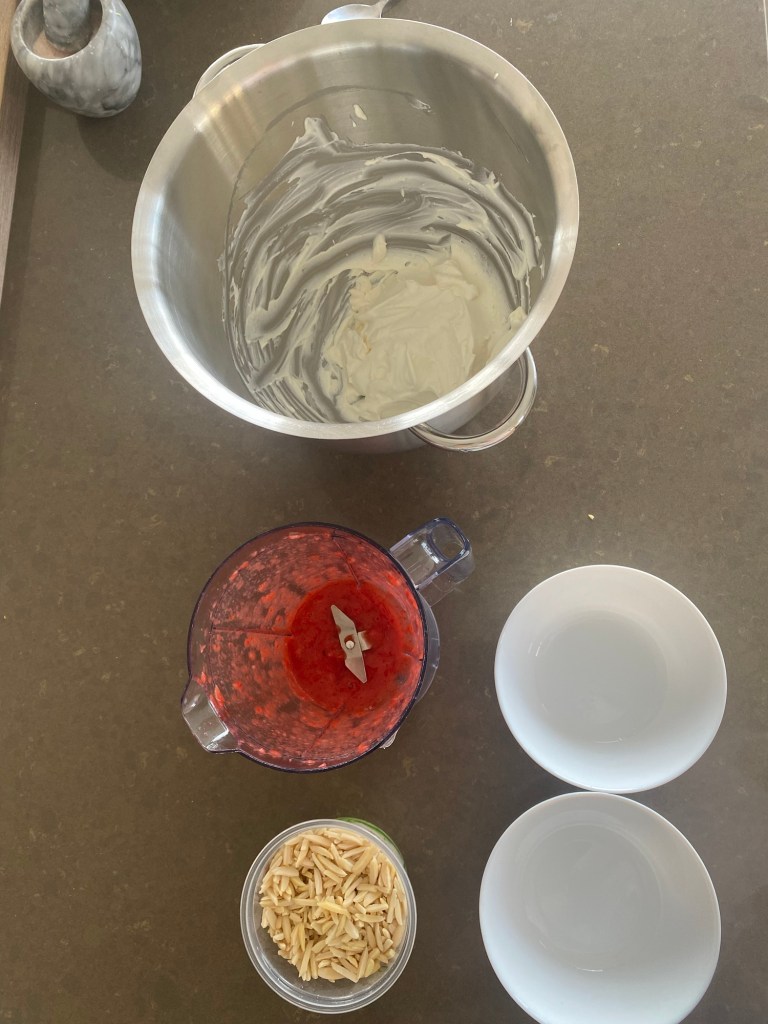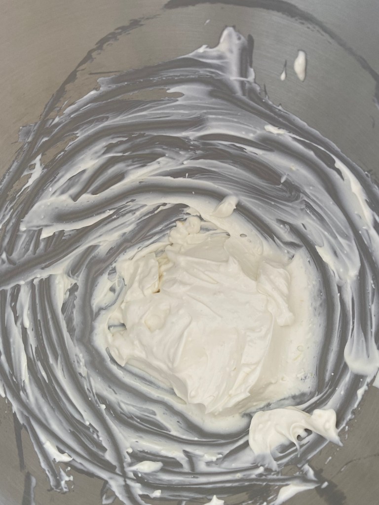 Krém připravíme tak, že ve šlehači rozmícháme mascarpone, jogurt a smetanu. Přidáme vanilkové cukry a aroma. Na závěr dodáme citronovou kůru. Dáme vychladit na 20 minut do lednice.